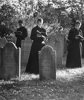 As freiras estavam todas numa sala, numa cerimônia de réquiem, rezando.
